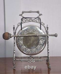 Aesthetic silver plated table gong, the well cast frame supporting the tooled gong, retaining the original beater.