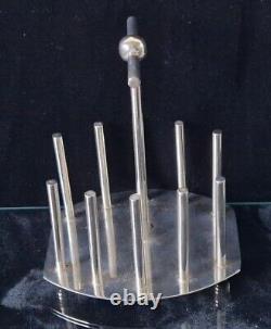 Rare Fine Dr Christopher Dresser Design Silver Plated Toast Rack With Oval Base And Ball Feet. Coronet imprint to the base.
