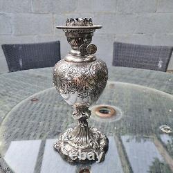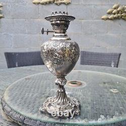 Original Large Fancy Victorian Walker & Hall Silver Plated Oil Lamp & Burner