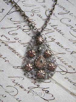 Rare Early Georgian French Normandie Silver & Gold Plated Filigree Pendant Chain